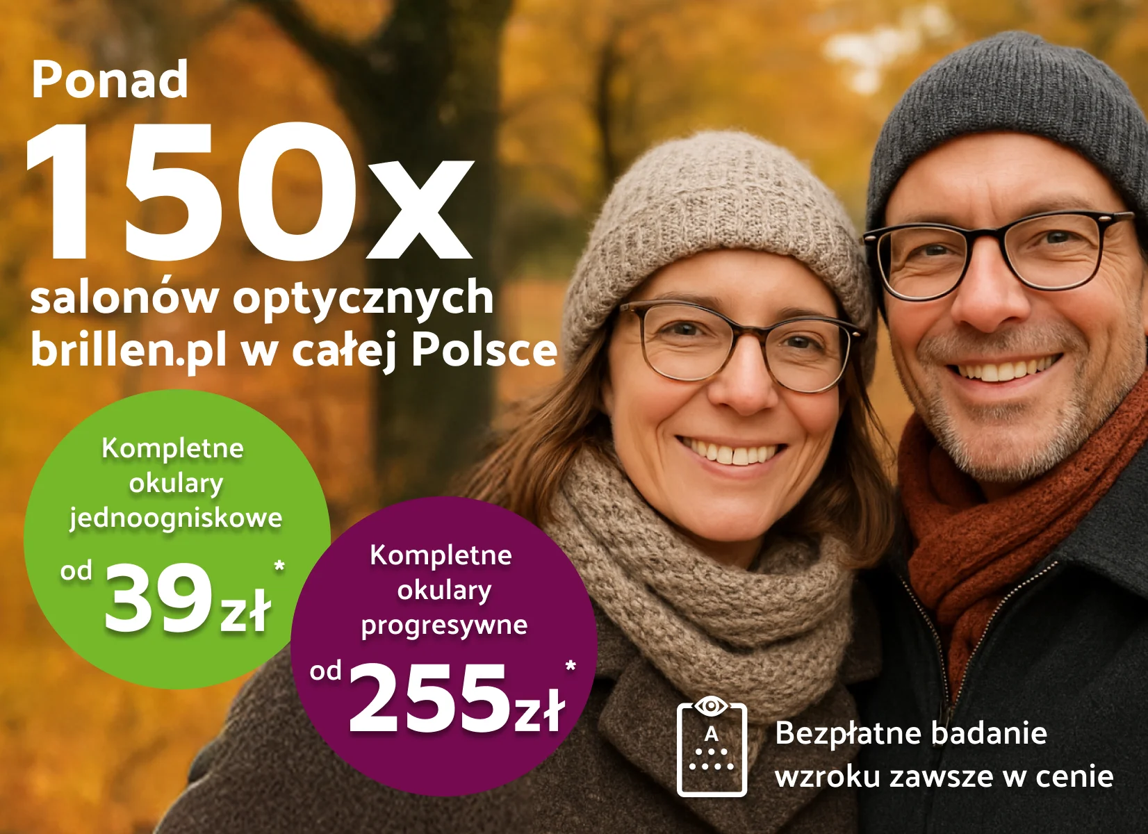 W ponad 150 salonach optycznych brillen.pl w całej Polsce czekają na Ciebie precyzyjnie wykonane okulary oraz spersonalizowane, profesjonalne porady. Zarezerwuj wizytę już dziś i przekonaj się, że doskonały wzrok może być w zasięgu ręki - bez ryzyka i zobowiązań. Czekamy na Ciebie w brillen.pl!