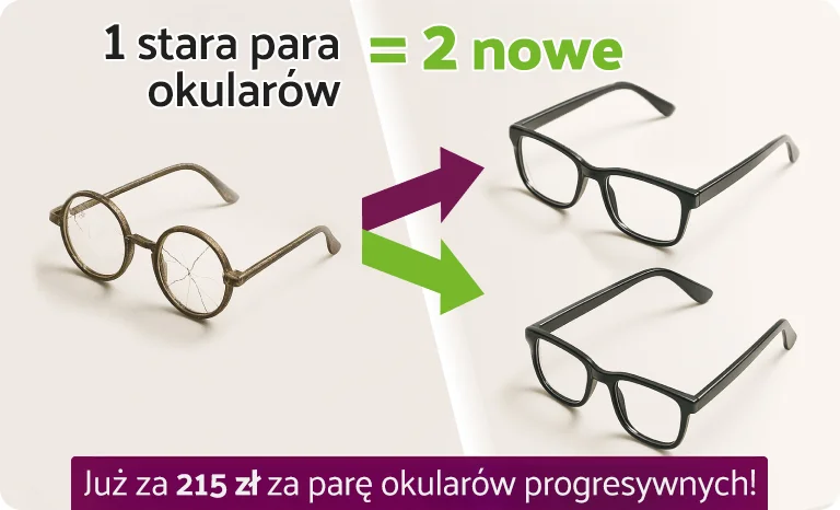 Przynieść do nas DWOLONĄ starą parę okularów i zgarnij 2 NOWE pary okularów progresywnych w bezkonkurencyjnej cenie!
