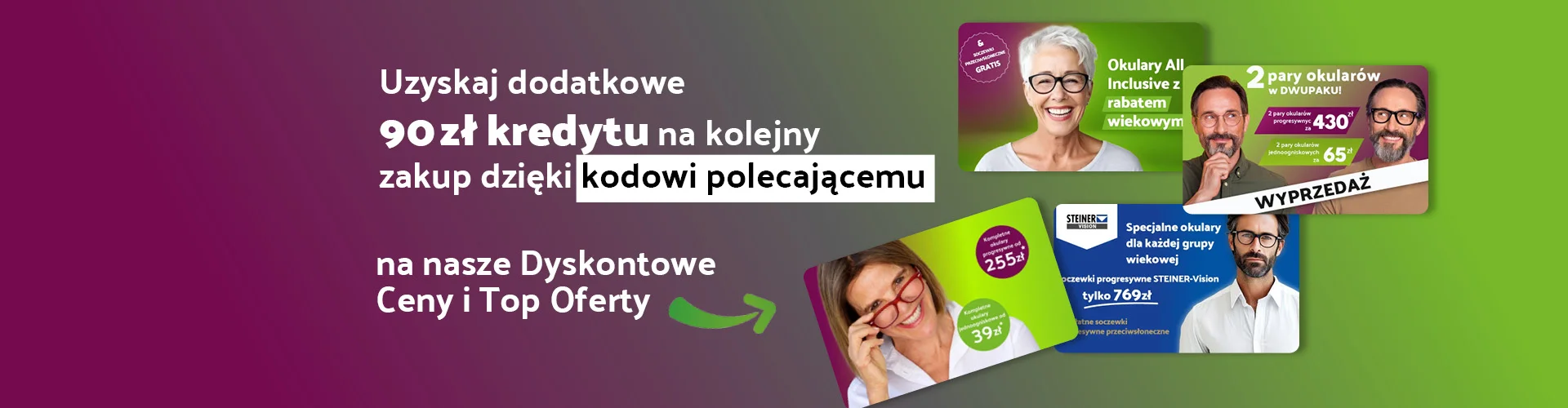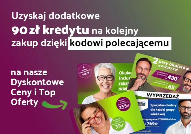 Witamy, oto Twój osobisty kod kuponu o wartości 90 zł. Zarezerwuj wizytę u najbliższego optyka brillen.pl i użyj kuponu, aby uzyskać dodatkowe 90 zł zniżki na wszystkie nasze Dyskontowe Ceny i najlepsze Top Oferty. Kupon jest przydzielony specjalnie dla Ciebie podczas dokonywania rezerwacji.